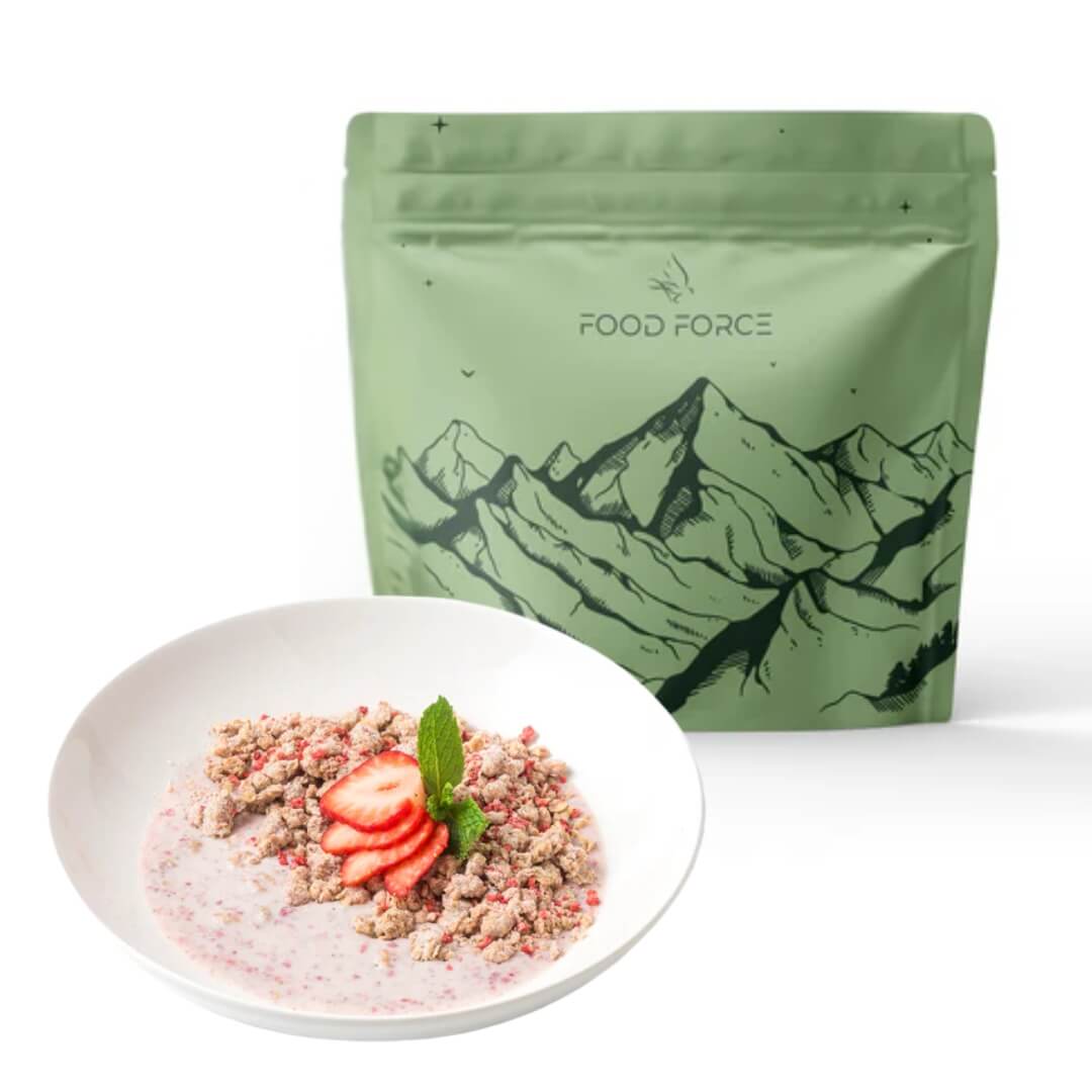 Denne frysetørrede ret med Granola muesli med jordbær, er et sikkert madvalg til dig, der skal have noget nemt, hurtigt og lækkert med på din tur. Du skal blot tilføje 220 ml kogende vand og 5 min. efter, er der serveret. Med frysetørret mad er du sikret at få god energi på din tur eller i hverdagen. Retten består af 1 portion på 120 gram og kan uåbnet holde sig i op til tre år.