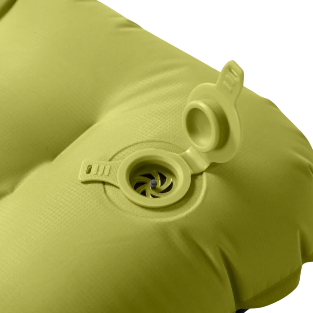 Liggeunderlaget leveres med en Vortex™ pump sack, der gør det nemt at pumpe liggeunderlaget op uden at tilføre fugt fra åndedræt. Derudover gør underlagets Laylow™ ventil det nemt at finjustere luftmængden i liggeunderlaget.