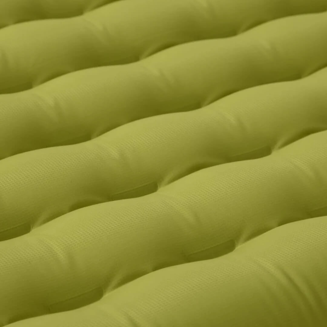 Med en tykkelse på 10 cm får du en blød og stabil liggeflade, der gør det lettere at sove godt, også selvom jorden er ujævn. Liggeunderlaget er designet til at holde dig centreret og give dig en mere stabil fornemmelse gennem natten.