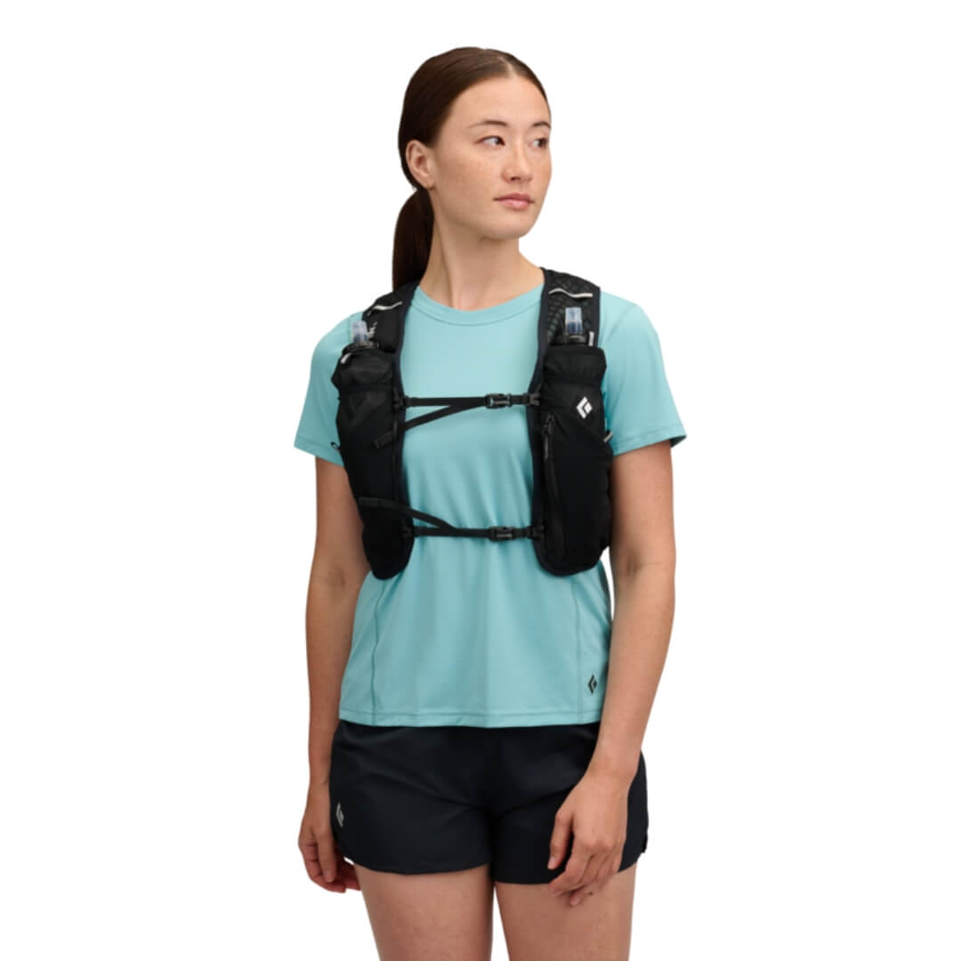 Denne Distance 6 Hydration løbevest er en praktisk og let vest til dig, som elsker at være aktiv. Denne model har specialfremstillet diamantformet afstandspanel i mesh på bagsiden, som øger luftstrømmen for maksimal åndbarhed. Den er designet med aftaleligt Z-pole opbevaringssystem, så man kan have sine stave hængt på vesten, når de ikke er i brug. Den har et tætsiddende design, så den ikke hopper rundt, når du er ude at løbe.