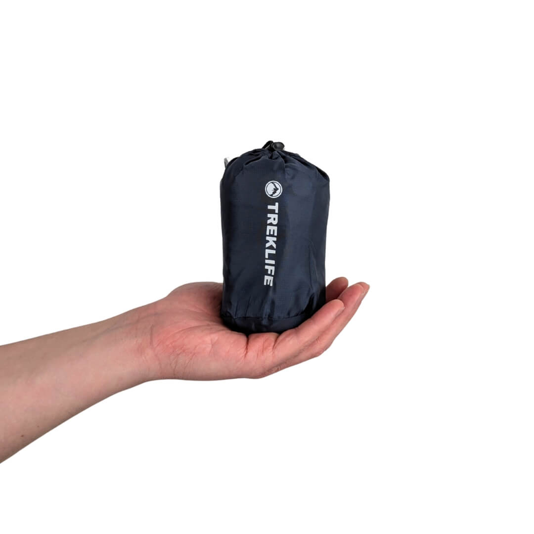 Når puden ikke er i brug, kan den hurtigt tømmes for luft og pakkes ned i den medfølgende pakkepose. Med en vægt på kun 100 gram og nedpakket størrelse på 12 x 8 cm er Treklife TravelLight et oplagt valg, når du ønsker maksimal komfort men med minimal oppakning.