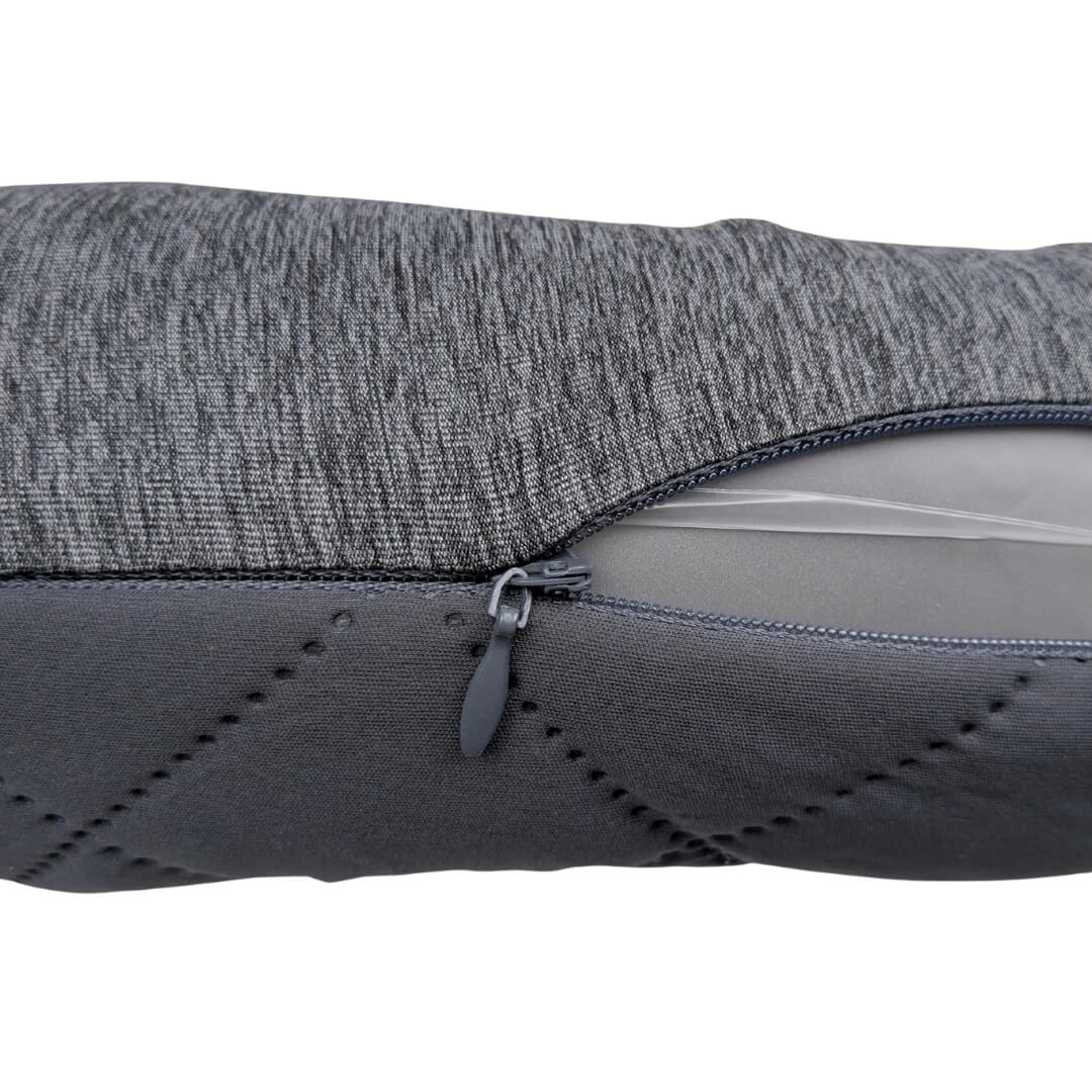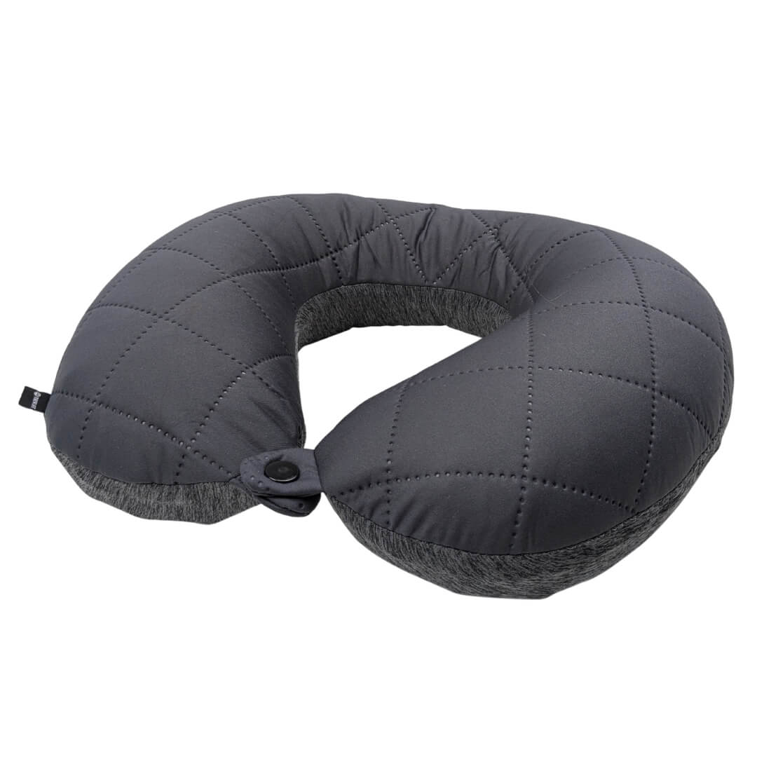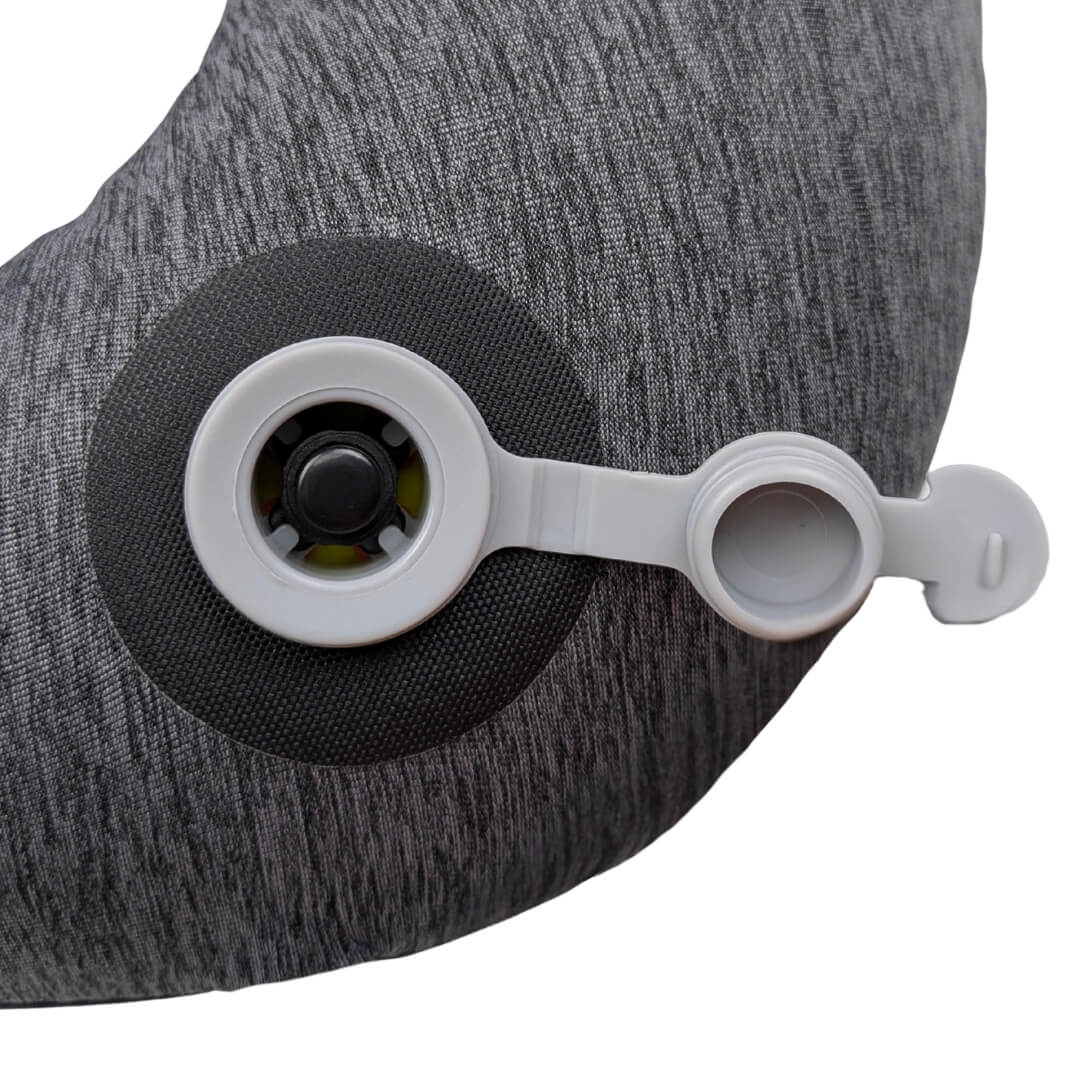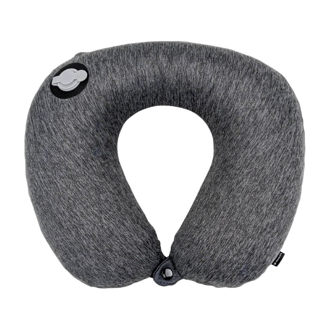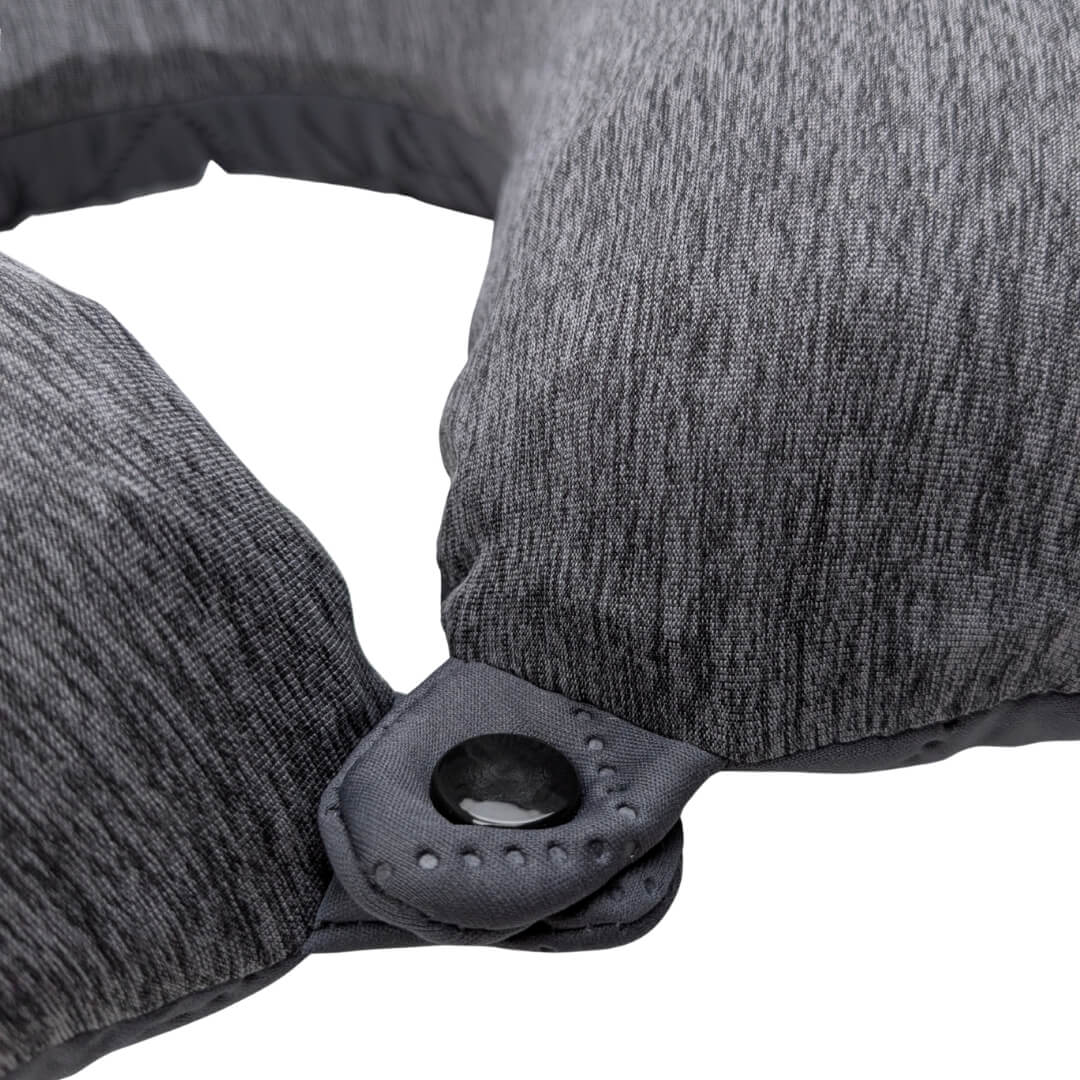Det bløde og behagelige materiale sikrer en komfortabel oplevelse, mens det meget kompakte design gør puden let at have med i tasken. Med en praktisk knap kan du samle siderne, så puden bliver siddende stabilt omkring nakken og hjælper med at holde hovedet på plads. Desuden kan betrækket tages af, som gør det nemt at vaske det.