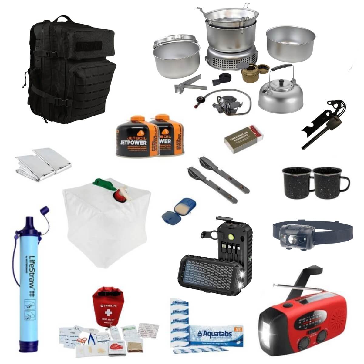 Denne store nødpakke er til dig, som gerne vil have alt udstyr, som er nødvendigt i tilfælde af en nødsituation. Derfor finder du i denne pakke både vigtigt førstehjælpsudstyr, men også udstyr der sikrer dig rent drikkevand. Nødpakken kommer derudover med en 45 liters rygsæk, hvor du kan samle dit udstyr i en grab n’ go bag, så den står klar.
