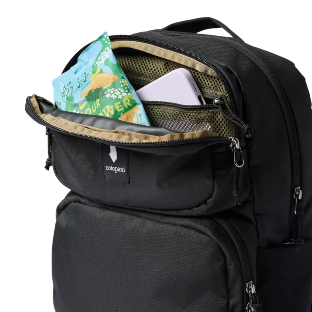 Tasra daypack fra Cotopaxi i sort er en farverig og praktisk model. Den kan rumme op til 16 liter og kommer med praktiske lommer og organiseringsmuligheder. Der er flere inddelinger i diverse lommer samt strækbare netlommer på siden til en drikkedunk eller andet.