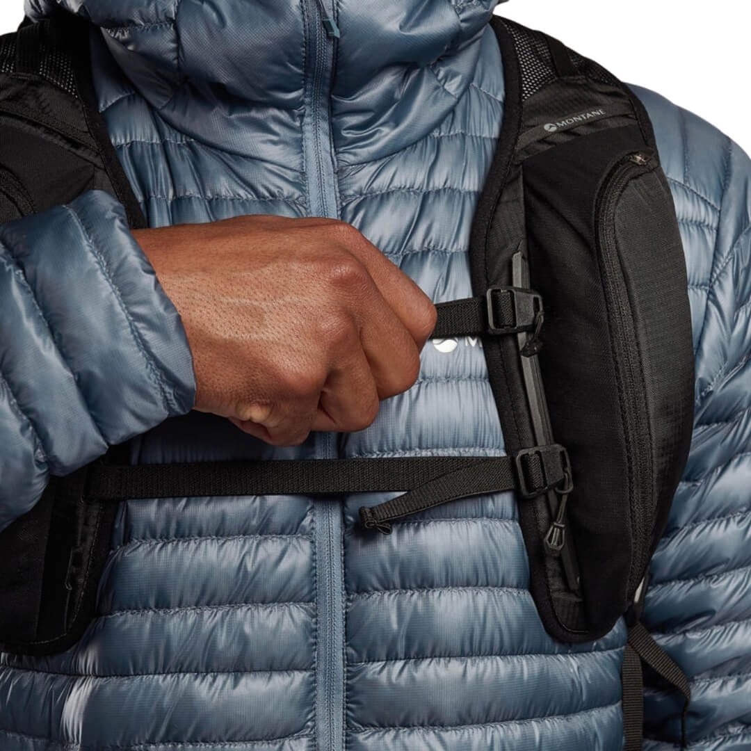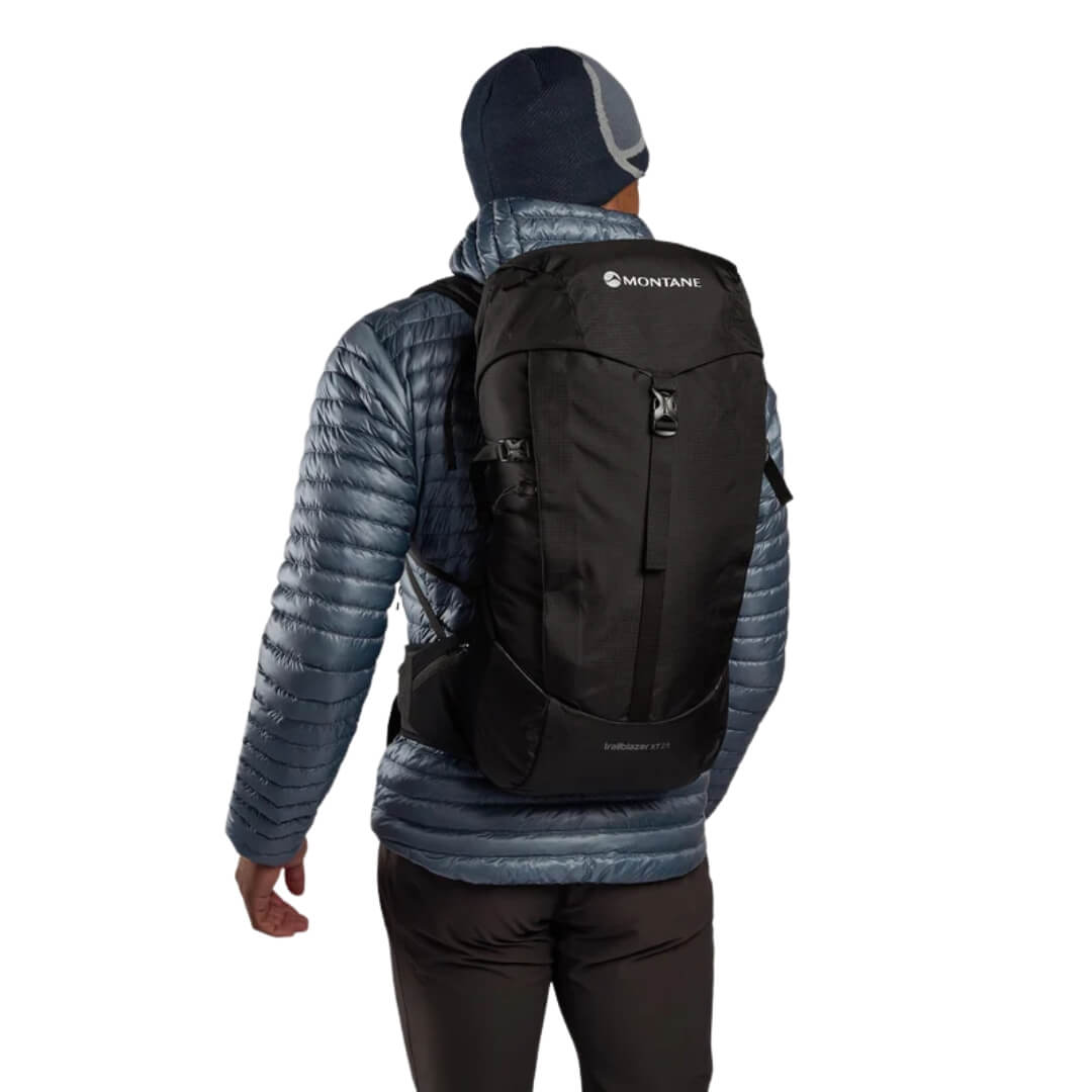 Rygsækken Trailblazer XT fra Montane har en kapacitet på 25 liter. Denne daypack kan tilpasses din krop, så du får den maksimale komfort, når du har den på. Dette nye design tager det bedste fra den ældre Trailblazer model og tilføjer øget komfort til tungere last, en specifik fastgørelse til fx vandrestave og det nye modulære T-Hook-system. Montane T-Hook-systemet er et specialdesignet system, der gør det muligt at flytte fastgørelsespunkterne på rygsækken. T-krogene er fastgjort gennem laserskårne huller på begge sider af frontpanelet og er blevet testet i bjergene for at give maksimal tilpasningsevne med minimal vægt.