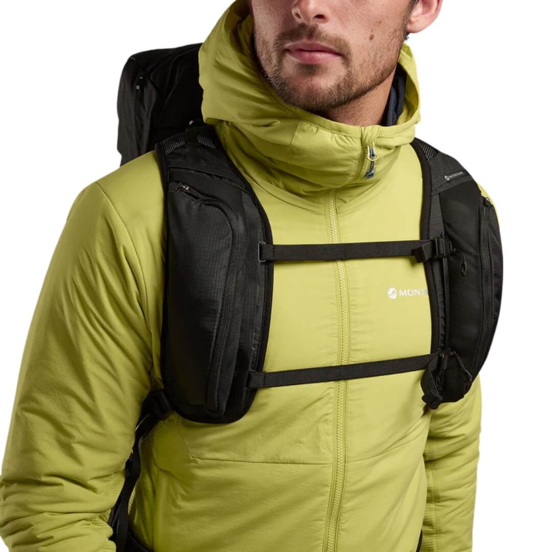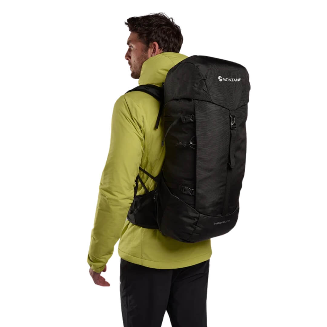 Rygsækken Trailblazer XT fra Montane har en kapacitet på 35 liter. Denne daypack kan tilpasses din krop, så du får den maksimale komfort, når du har den på. Dette nye design tager det bedste fra den ældre Trailblazer model og tilføjer øget komfort til tungere last, en specifik fastgørelse til fx vandrestave og det nye modulære T-Hook-system. Montane T-Hook-systemet er et specialdesignet system, der gør det muligt at flytte fastgørelsespunkterne på rygsækken. T-krogene er fastgjort gennem laserskårne huller på begge sider af frontpanelet og er blevet testet i bjergene for at give maksimal tilpasningsevne med minimal vægt.