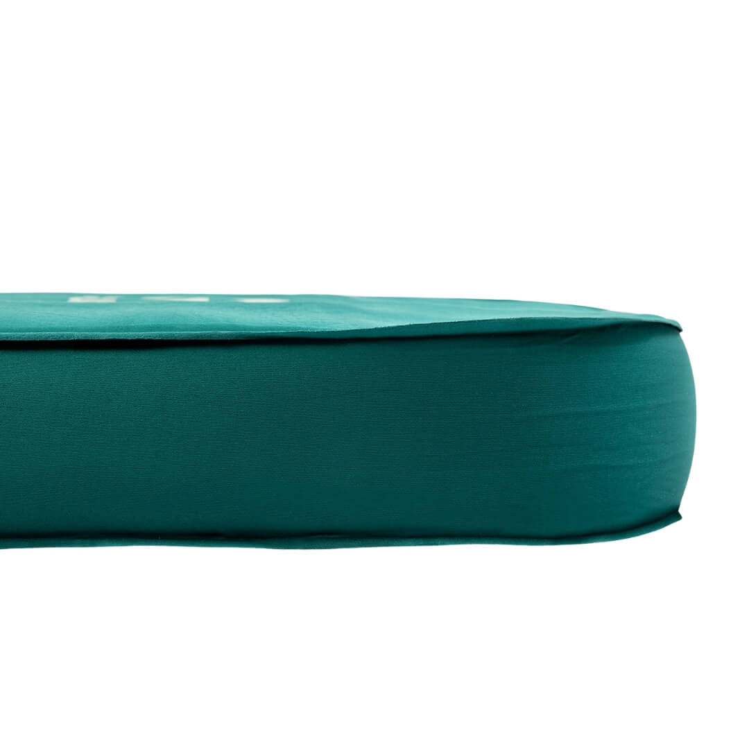 Liggeunderlaget er fremstillet med fokus på reduceret miljøbelastning. Ved brug af Solution dyed teknologi farves materialet før vævning. Det reducere både vand og energiforbrug. Liggeunderlagets stof er Bluesign-godkendt, RCS-certificeret og fremstillet i 100% genanvendte materialer. Oversiden består af 50D stretch polyester, mens underfladen er lavet i 75D polyester, som er mere slidstærkt.