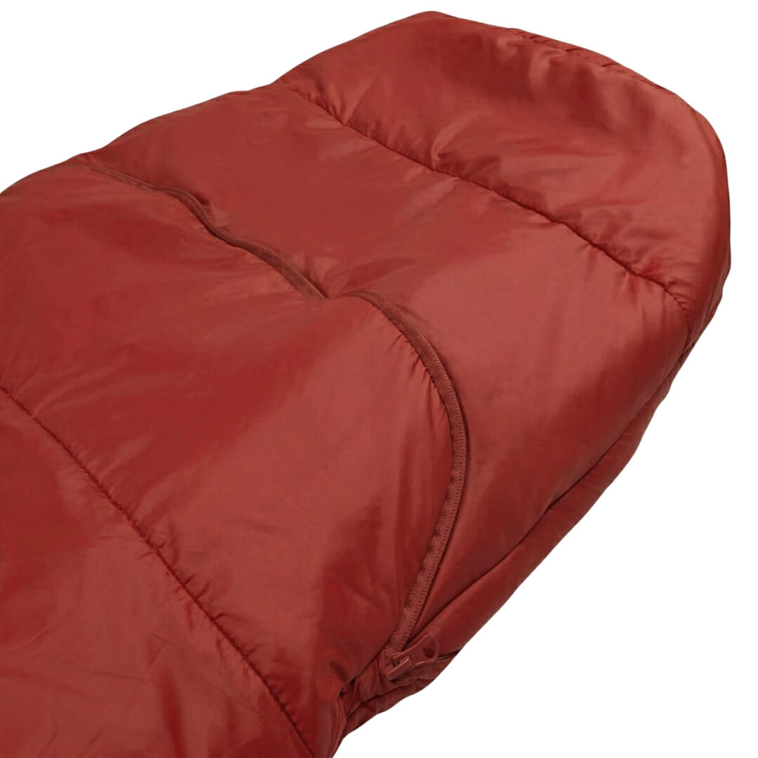 Den er udstyret med både vind- og skulderbaffle, som hjælper med at holde på varmen og reducere kuldeindtrængning. En anti-snag 2-vejs lynlås gør det desuden nemt at temperaturregulere soveposen. En indvending lomme i soveposen sikrer at det er muligt at have småting som telefoner eller andre værdigenstande tæt på kroppen mens man sover.