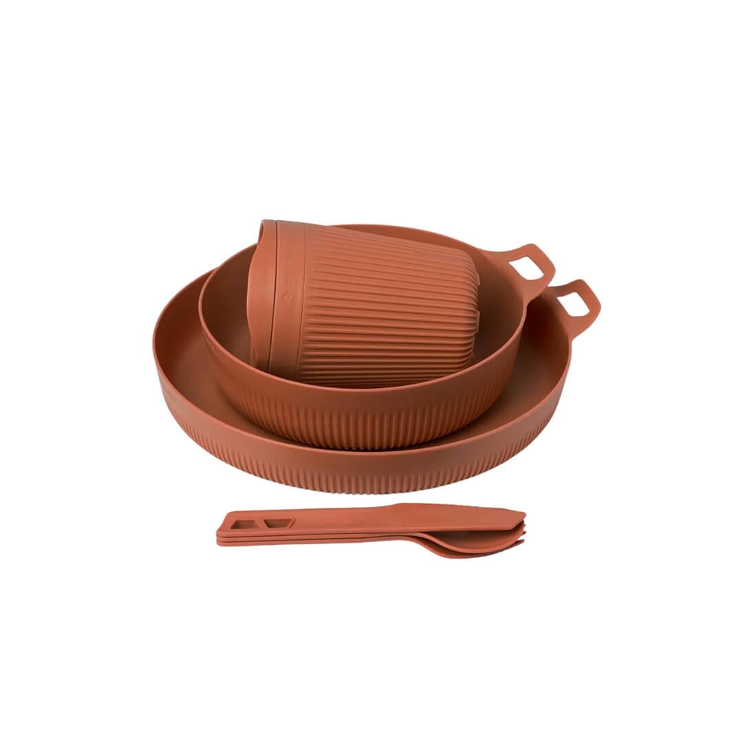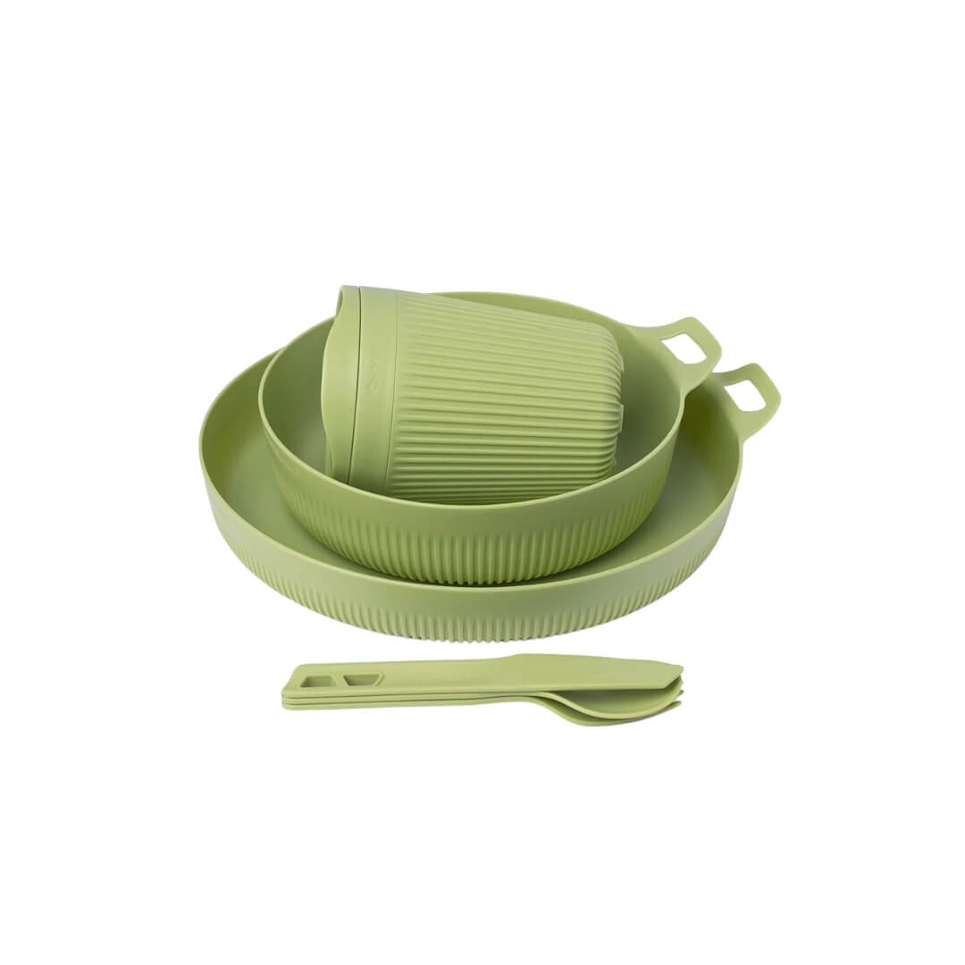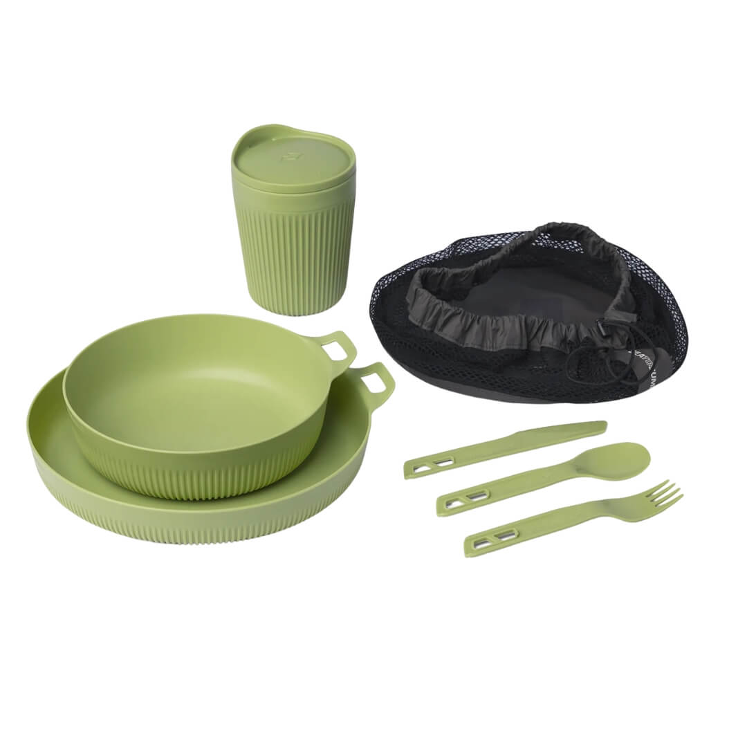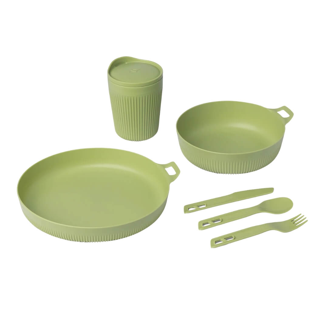Horizon Dinnerware Set fra Sea to Summit er et praktisk spisesæt til turen. Spisesættet består af 6 dele, som er: tallerken (1200 ml.), skål (1000 ml.), kop (475 ml.) og 3-delt bestiksæt (kniv, gaffel, ske), som kan sættes sammen til én lang spork. Tallerken og skål har et praktisk greb på siden, som passer til både venstre- og højrehåndet betjening, og som samtidig fungerer som holder til bestikket.
