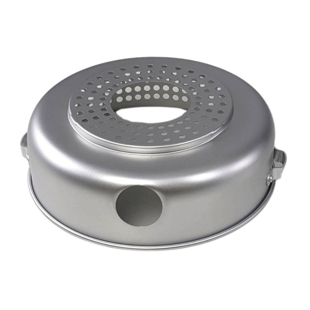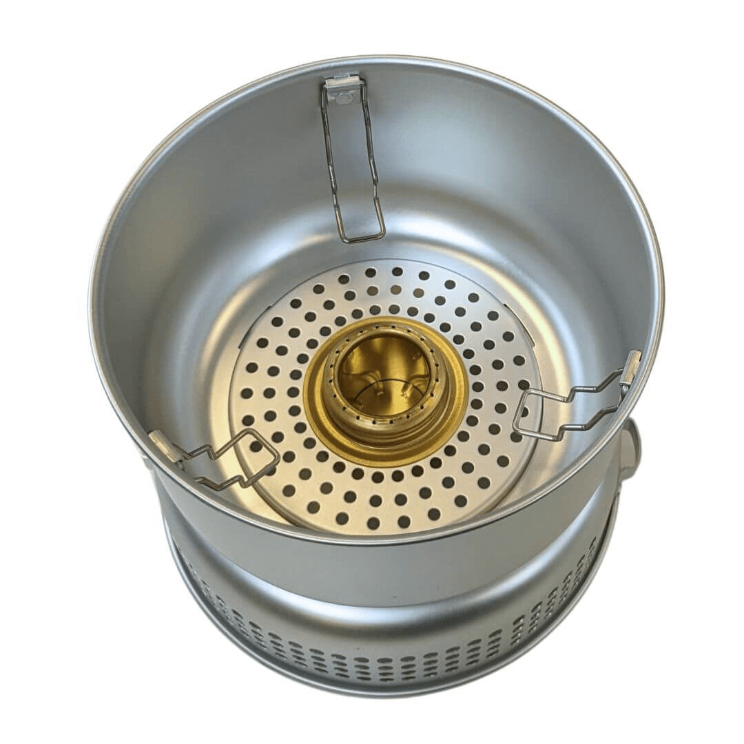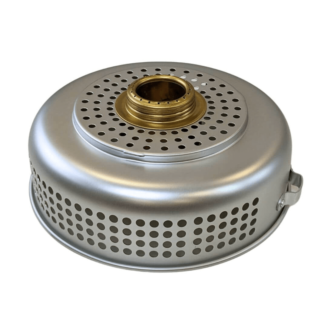 Sættet er multi-funktionelt, og kan derfor bruges med en gasbrænder grundet vindskærmens udgangshul – såvel som med en spritbrænder.