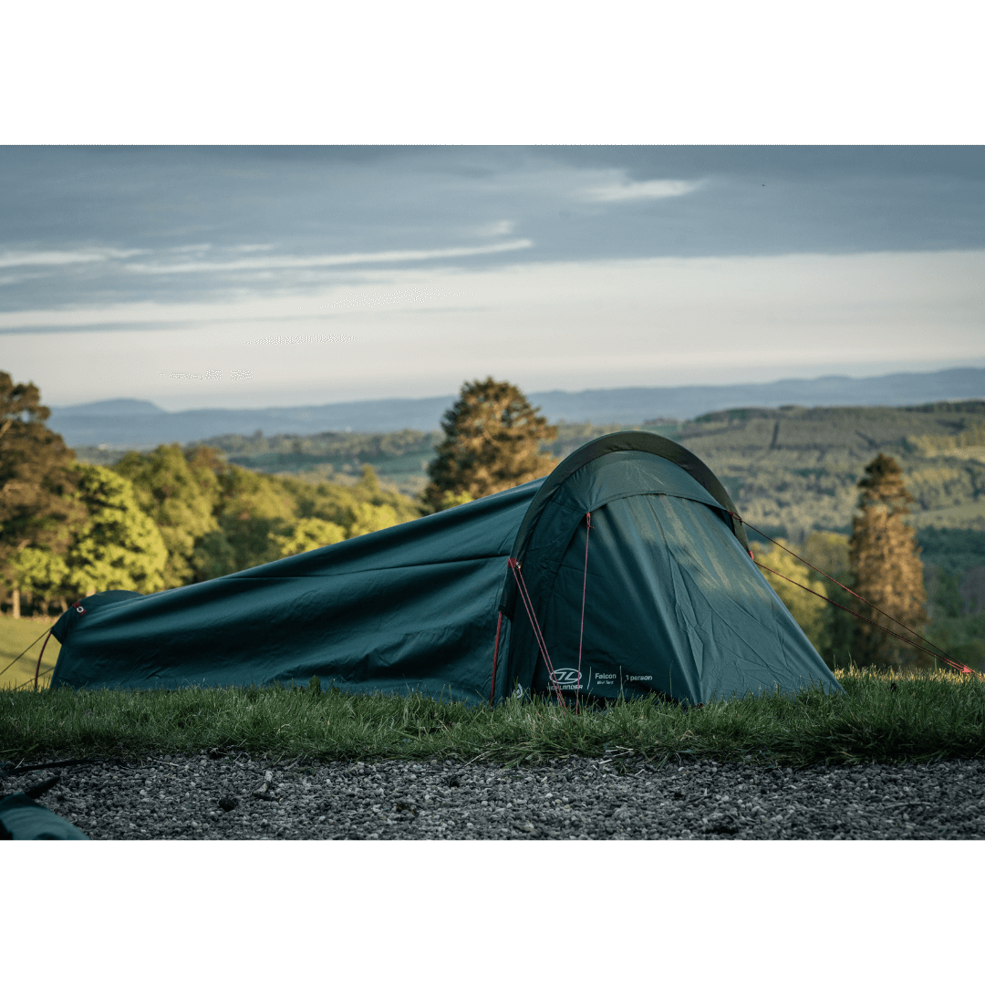 Falcon Bivi telt fra Highlander er et 1 personers telt, som er nemt at have med på tur. Teltet har god ventilation og er brandhæmmende. Falcon Bivi er let at slå op, da det er konstrueret med to teltstænger. Teltet har et vandsøjletryk på 4000 mm og tapede sømme. I indgangen er der tovejslynlås samt myggenet.