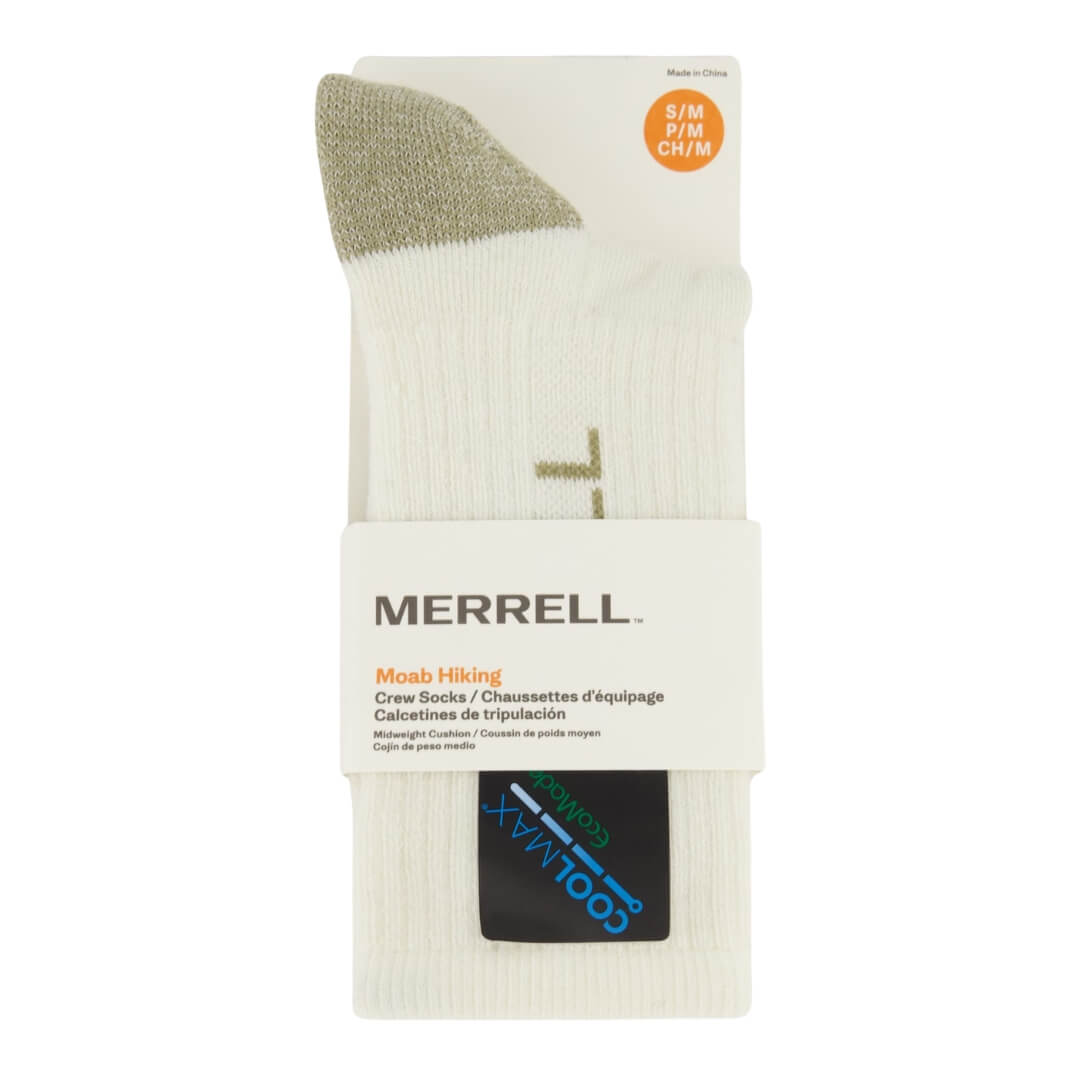 Vandrestrømpen Moab Hiking Crew er en behagelig vandresok fra Merrell. Sokkerne er designet med en behagelig pasform og støtte, så fødderne holdes komfortable, også på længere ture.